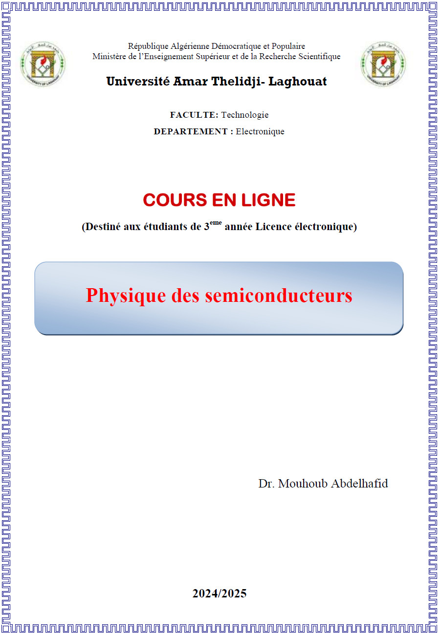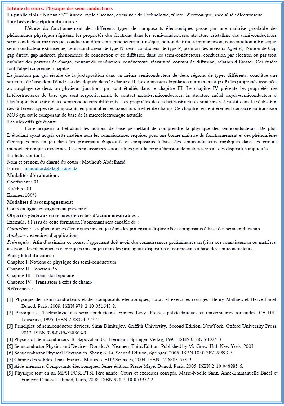Faculté de Technologie / Dept: Electronique / Licence / Electronique / Semestre 5 / Unité Fondamentale