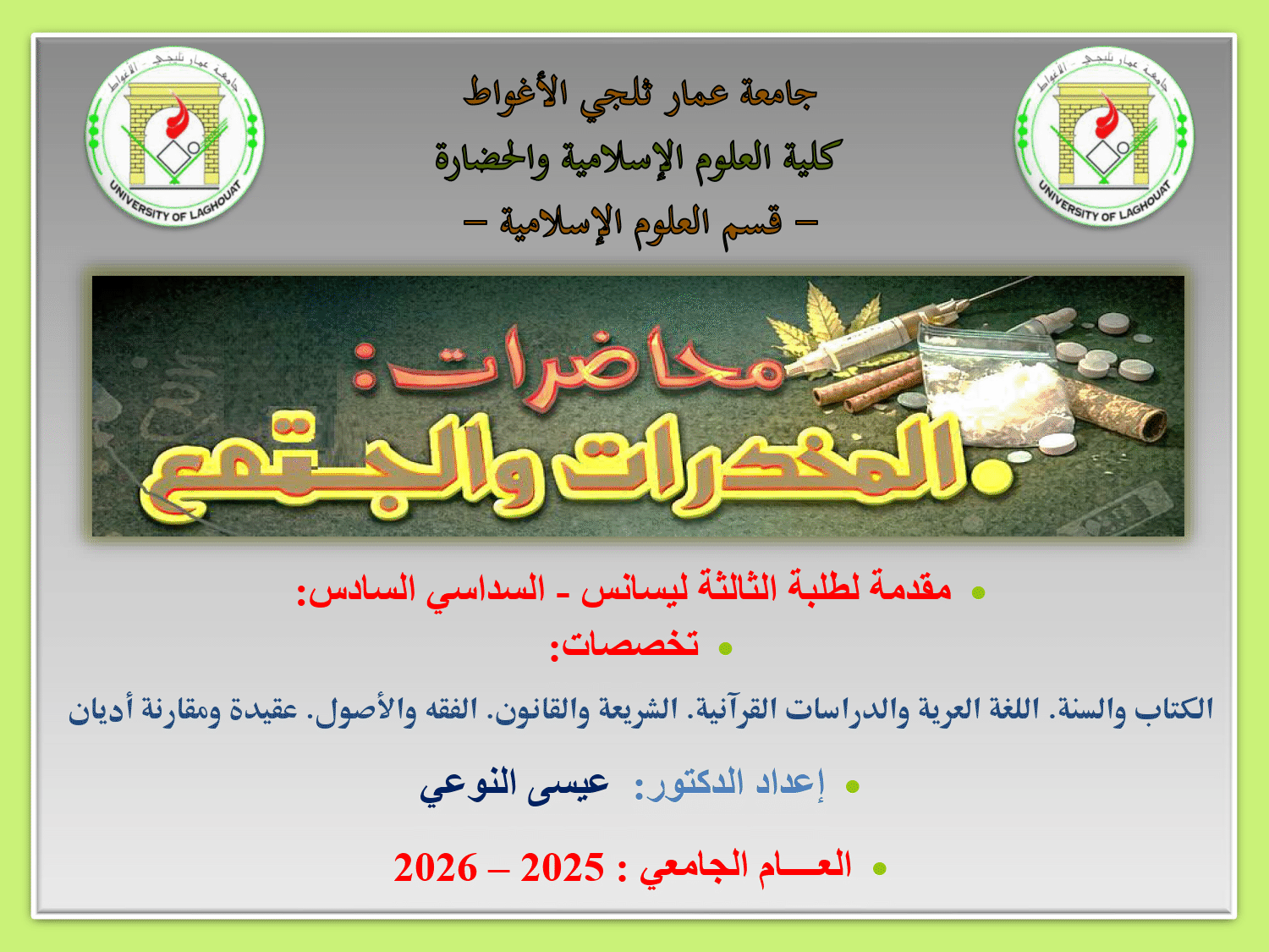 العــــام الجامعي : 2025 – 2026